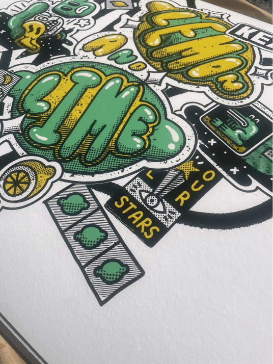 Marking the release of Keyside’s new single, this is a framed fine art print of the Lemon & Lime artwork, hand signed by the artist Neil Keating and all four members of Keyside.