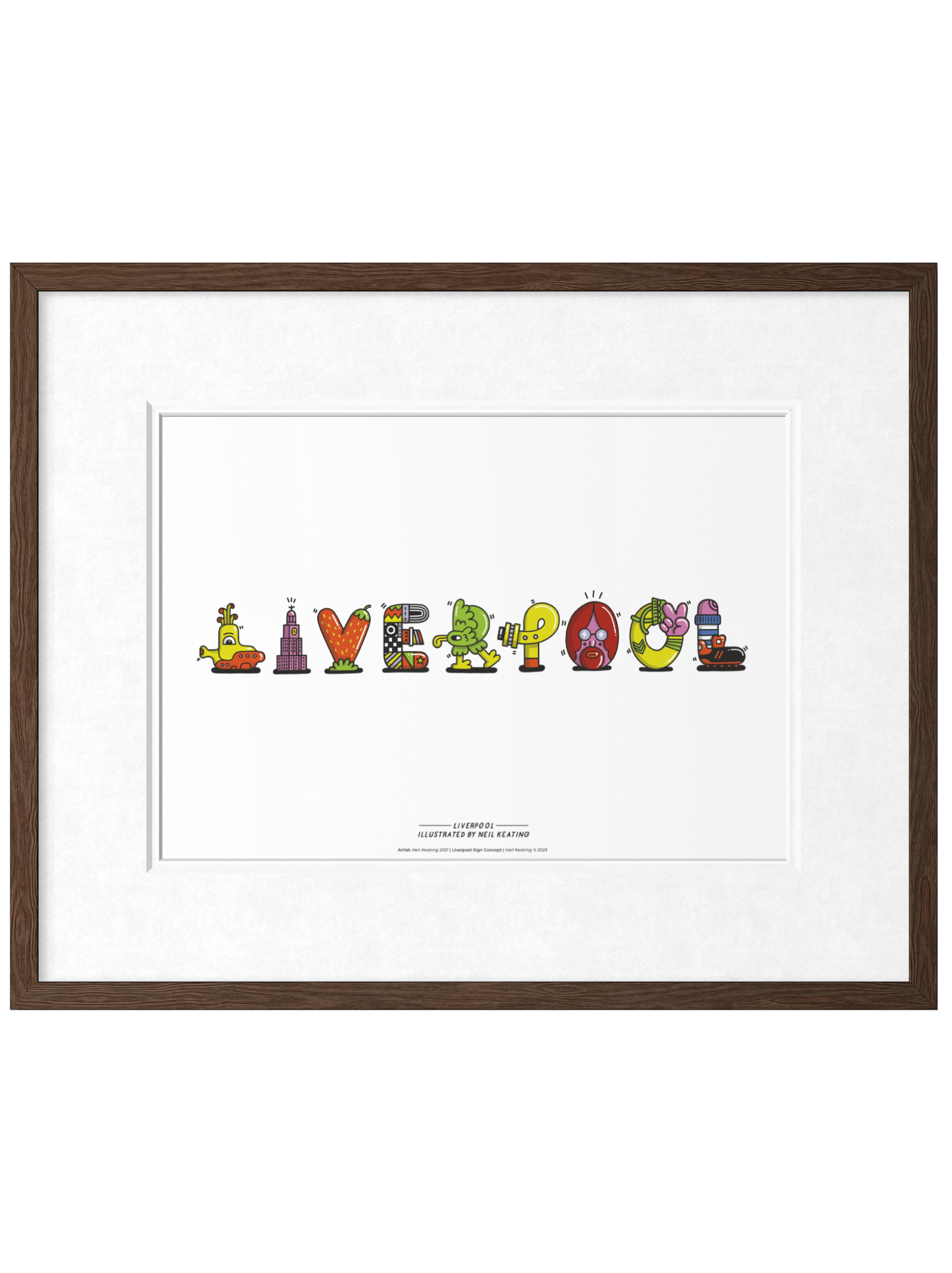 The design has a unique piece of history behind it. It was the winning concept for Liverpool’s famous typeface installed in Liverpool One, and became the first design to be implemented on the typography making this print a genuine piece of Liverpool design history.